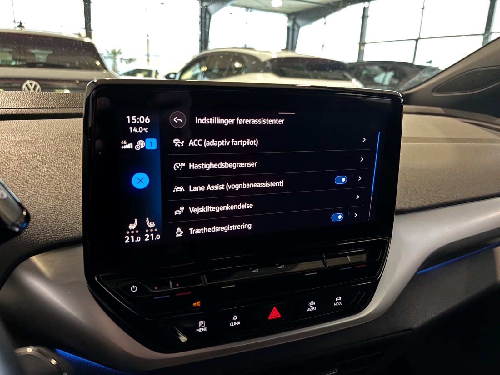 kørecomputer, digitalt cockpit, bagagerumsdækken, multifunktionsrat, læderrat, stofindtræk, højdejust. førersæde, splitbagsæde, ambiente belysning, 19" alufælge, helårshjul, el-klapbare sidespejle m/varme, tågelygter, led kørelys, fuld led forlygter, led baglygter, automatgear, varme i rat, 2 zone klima, fjernb. centrallås, nøglefri adgang, nøglefri tænding, adaptiv fartpilot, udv. temp. måler, sædevarme, 4x el-ruder, trådløs mobilopladning, dab radio, navigation, håndfrit til mobil, musikstreaming via bluetooth, android auto, apple carplay, usb-c tilslutning, alarm, regnsensor, bakkamera, parkeringssensor (for), parkeringssensor (bag), dæktryksmåler, træthedsregistrering, skiltegenkendelse, isofix, automatisk lys, airbag, antispin, esp, vognbaneassistent, stemmebetjening, automatisk nødbremsesystem, auto hold |